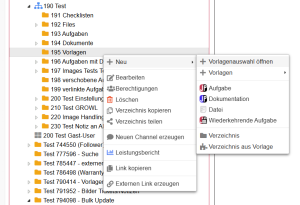 - Über rechte Maustaste → Neu → Vorlagenauswahl öffnen starten Anwender die zentrale Vorlagenauswahl.